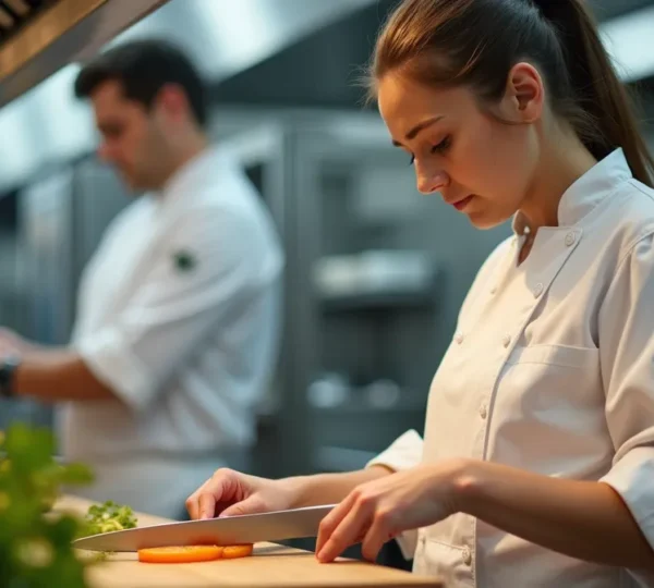 L’entrée dans le métier se fait presque toujours par le poste de commis de cuisine. Ce rôle d’apprenti implique humilité et répétition : éplucher des légumes pendant des heures, nettoyer les plans de travail, préparer les éléments de base. C’est une période éprouvante physiquement, où les blessures de fatigue sont fréquentes et où il faut prouver sa valeur en acceptant les tâches ingrates. Pourtant, c’est à ce stade qu’on apprend les fondamentaux : l’organisation du poste de travail, le respect des fiches techniques, les gestes de base.