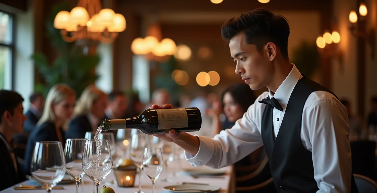 Le secret ne réside pas dans l’apprentissage de plus de techniques, mais dans la compréhension profonde des principes qui les sous-tendent. Il s’agit de passer d’un rôle d’exécutant à celui de maître du jeu, en maîtrisant une véritable science du service. Cette science repose sur trois piliers souvent ignorés : la biomécanique du geste, la psychologie de la perception client et la chorégraphie silencieuse de la salle. Un geste parfait n’est pas seulement élégant ; il est physiquement optimisé, psychologiquement rassurant pour le client, et économiquement valorisable pour l’établissement.